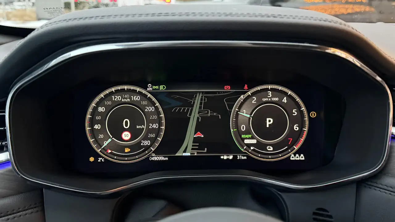 The listing states: 2023, mileage 49,950 km, Elektryczno-benzynowy, Automatyczna, 404 hp. Jaguar Land Rover Metropool Noord · Schoten · BE. Price guide: 4,233,151 ₽. This is the vehicle price in the country of dispatch; the final amount including delivery, customs and paperwork is calculated separately before a purchase decision. There are enough photos to review the body, interior, lighting, wheels and general condition before requesting a calculation.