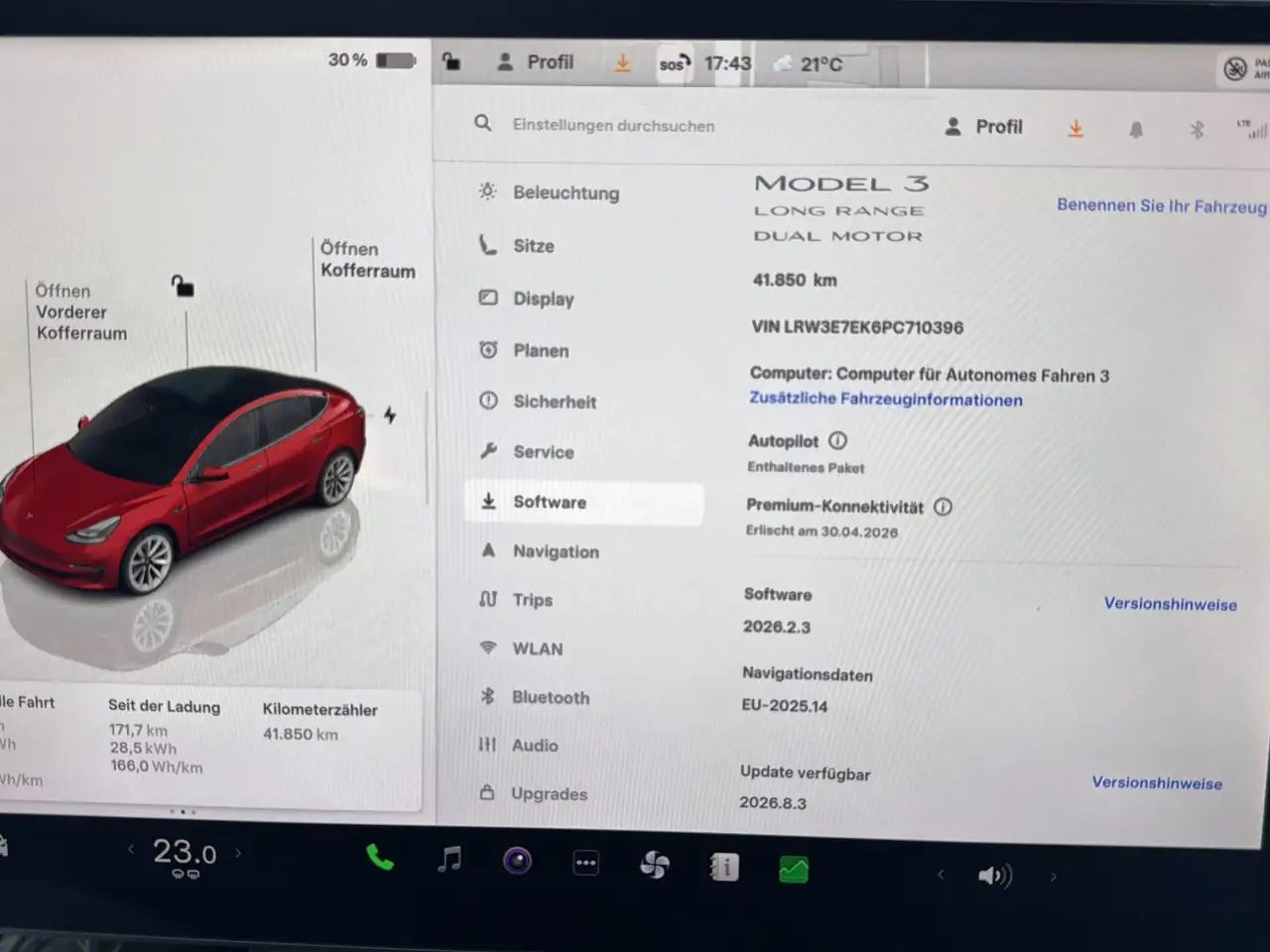 Tesla Model 3 LongRange AWD Autopil*AHK*SO94%*19*Ryzen is a modern electric vehicle for comfortable city and highway use: 2023, mileage 41,450 km, automatyczna, 498 hp. Before purchase, we check the seller, documents, photo-based condition and specification, then prepare a turnkey delivery estimate.