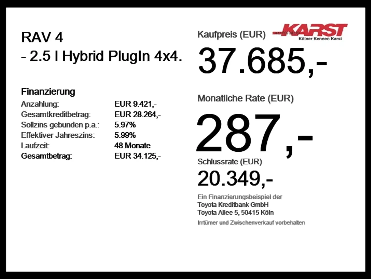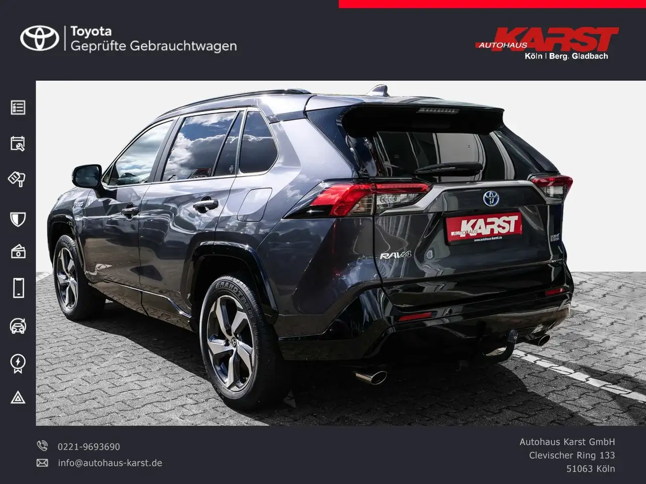 Toyota RAV 4 - 2.5 l Hybrid PlugIn 4x4. Styl + Technik is a clear on-request option for a client who wants to choose the vehicle before purchase and see the estimate in advance: 2022, mileage 71,285 km, automatyczna, 306 hp. Before purchase, we check the seller, documents, photo-based condition and specification, then prepare a turnkey delivery estimate.