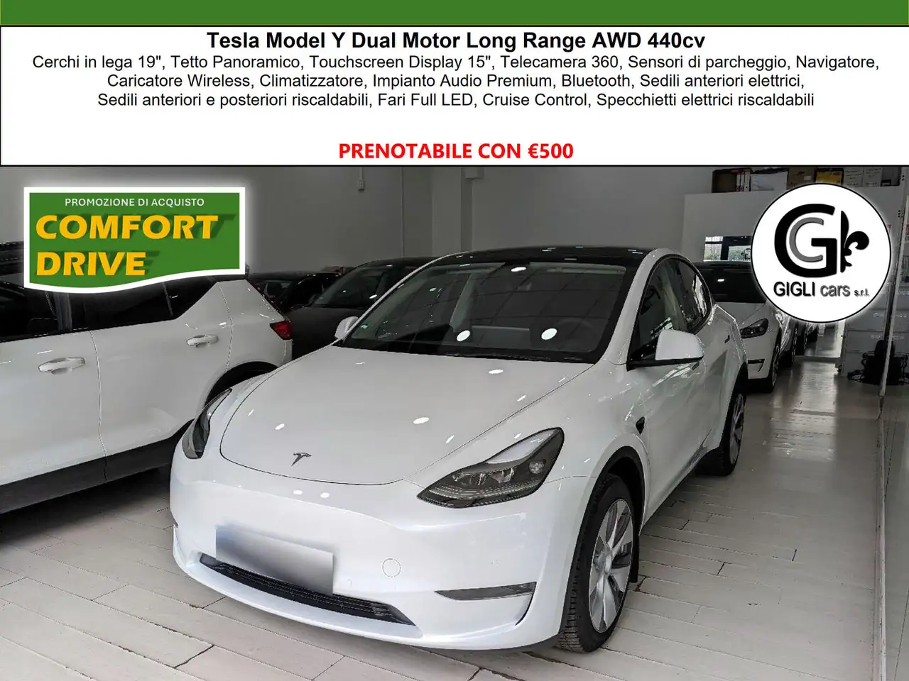 Tesla Model Y 440 cv, AWD, Tetto Panoramico, Autonomia WLTP 533k